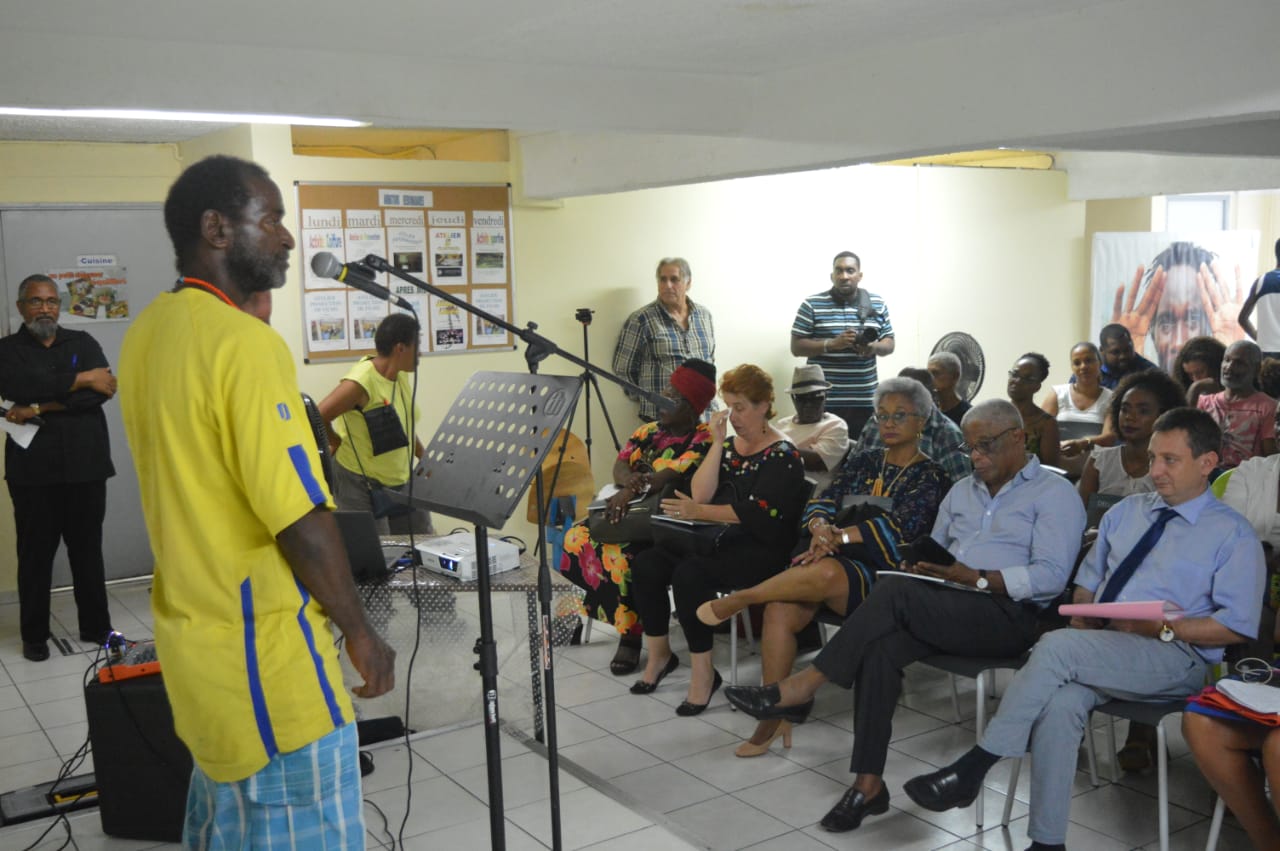 Un moment fort émouvant. Car, il y avait en présence, les représentants des institutions partenaires. À savoir ceux de la DJSCS, de l’ACISE, de la Préfecture, de la CAF, de la Banque alimentaire, de la Croix-Rouge et de la Ville de Fort de France, la DAC étant excusée ; et surtout, celle des bénéficiaires des dispositifs de l’ACISE, en particulier ceux qui ont participé au projet.